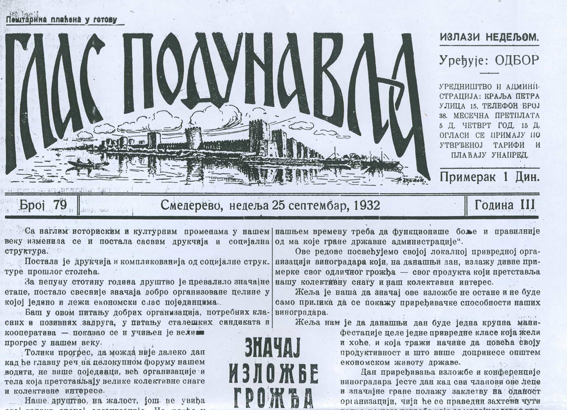 ПРВА ИЗЛОЖБА ГРОЖЂА У СМЕДЕРЕВУ